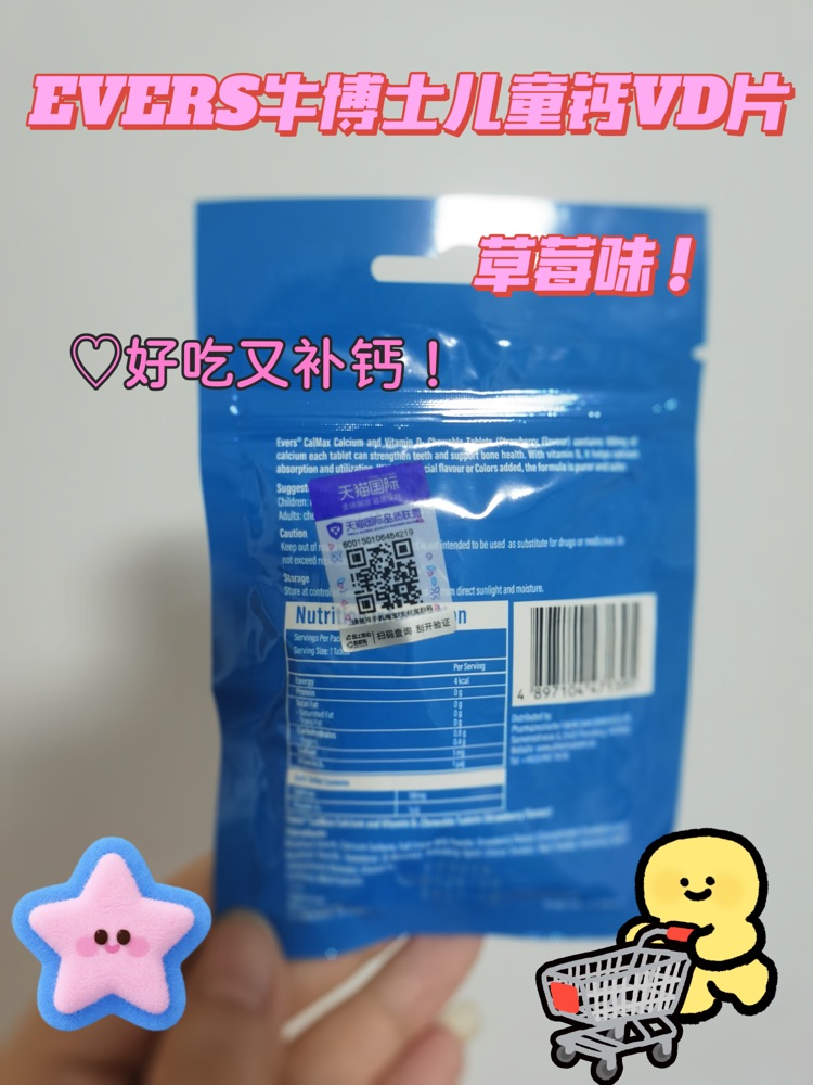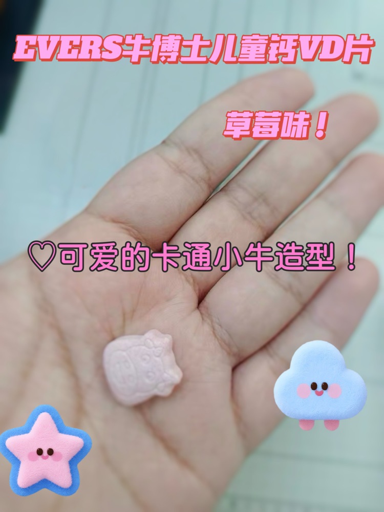 🌟🌟🌟最近为宝宝淘到了补钙好物:EVERS牛博士儿童钙VD片,这款钙片是草莓味,卡通小牛造型,加上来自新西兰的天然牛奶,浓郁的奶香,宝宝看到都要主动吃呢! 🌟🌟🌟 EVERS牛博士儿童钙VD片的主要成分是碳酸钙和维生素D3,能满足宝...