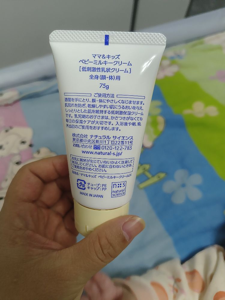 家有三个多月的宝宝,冬天脸蛋就容易干红起皮,试了不少面霜都没太满意,这次申请到Mama&Kids婴儿滋润乳霜的试用,真的挖到宝了! 先说说产品本身,75g的容量很适合日常家用,管身设计简约干净,能很好防止宝宝误碰挤出,细节特别贴心。挤出来的乳霜是奶...