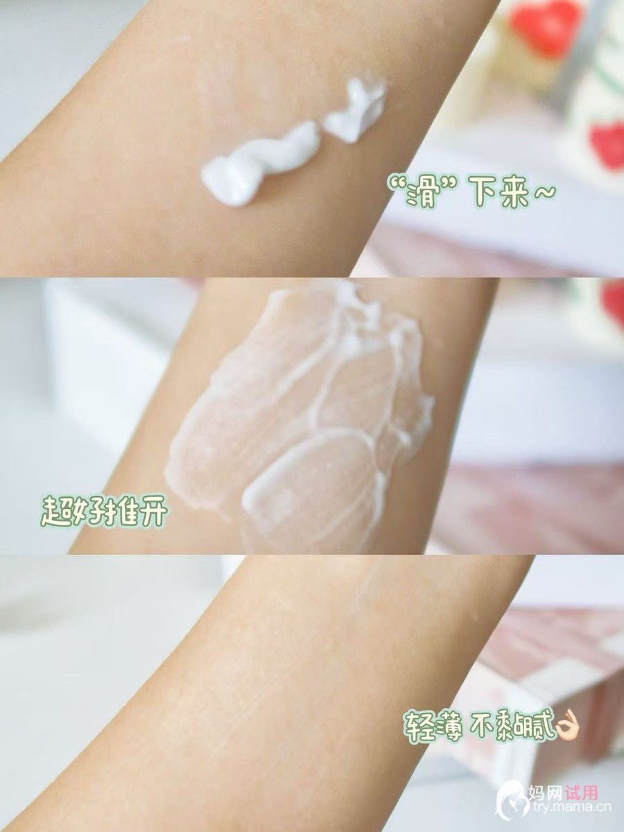 它的质地是很丝滑的慕斯质地,轻轻一推就抹开了,抹完后皮肤是那种喝饱水的润泽感,摸上去软软嫩嫩的,表面一点儿不黏腻,换季又红又干燥的”苹果脸“终于不那么红了!