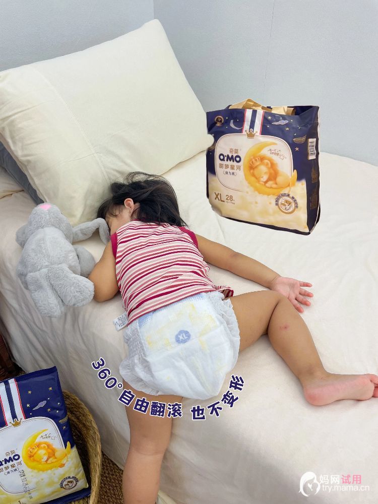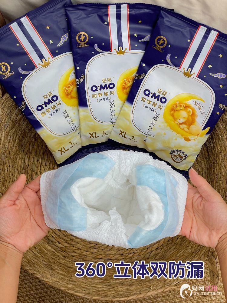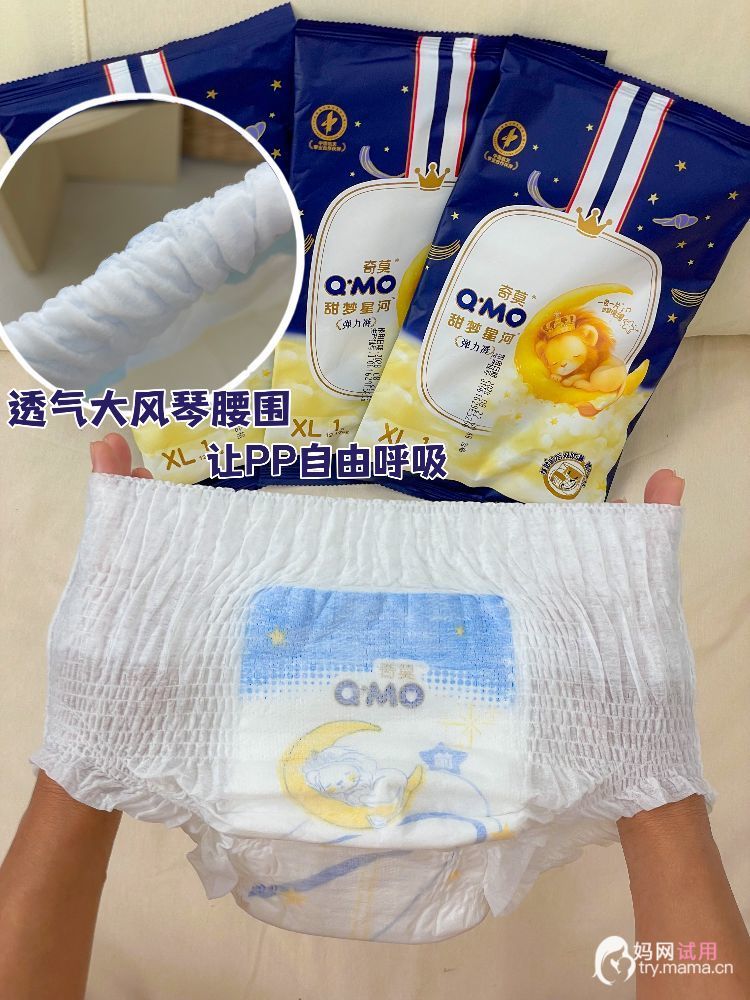 她提到,真正的夜用拉拉裤需要同时具备三个条件:立体防漏设计、快速吸收芯体和透气防闷热材质。正好看到奇莫新出的甜梦星河安睡裤,我决定按这个标准试一试。 实际使用后,我发现它确实做到了专业要求的关键点: · 第一次换上的早上,我特意摸了摸宝宝的大腿根部——以往最容易漏尿的地方,居然是干爽的!仔细看才发现,它的防漏边不是普通的一层,而是前后都有加高立体护围,像给宝宝穿上了“防漏小盔甲”。即使宝宝趴睡,后背也能牢牢护住。 · 吸收速度让我很惊喜。有一次宝宝睡前喝太多水,半夜我担心地摸了下拉拉裤,表面依然干爽。后来看说明才知道,它的芯体用了进口吸水分子,能快速锁住尿液。而且导流槽设计得很科学,尿液不会集中在一处。 · 最让我放心的是它的透气性。以前用厚的夜用裤,宝宝屁股总是有点潮。这款的腰围像手风琴一样可以伸缩,不会勒肚子,还能促进空气流通。连续用了一周,没有出现红屁屁。