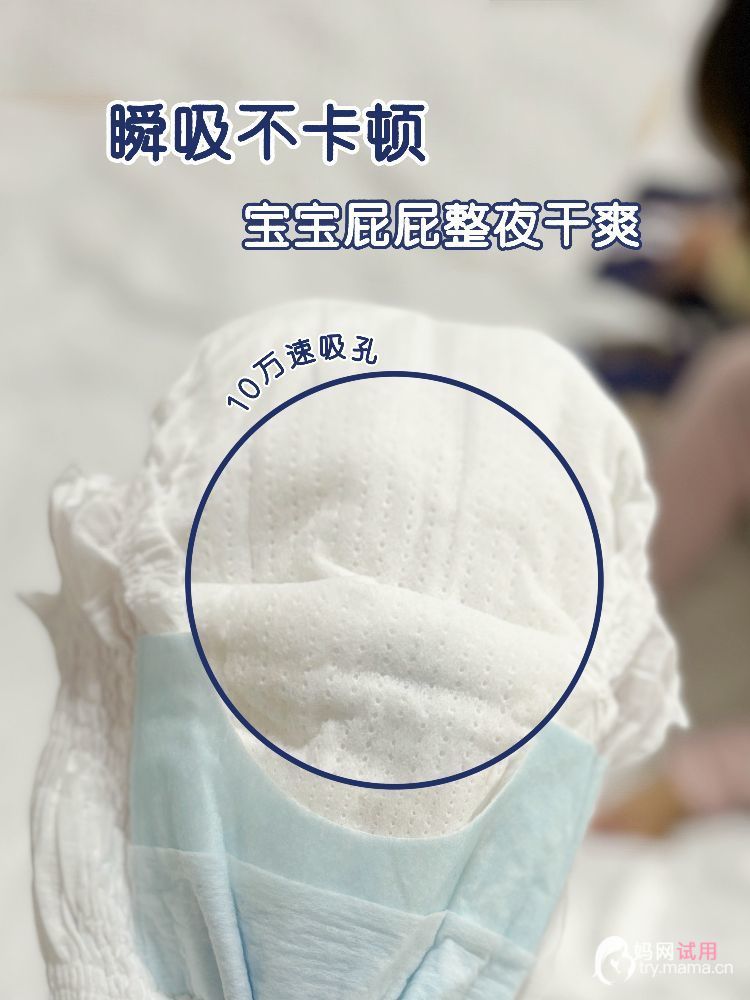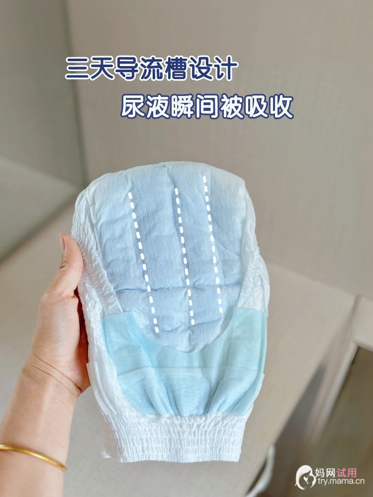 更让我惊喜的是它的吸水能力。官方说能吸收十次尿量,我家“小尿霸”亲测属实。而且三条导流槽设计特别贴心,尿液刚出来就被均匀导流、瞬间吸收。早上换裤子时摸内里,还是干干爽爽的,一点不反渗,屁屁能干爽一整夜~