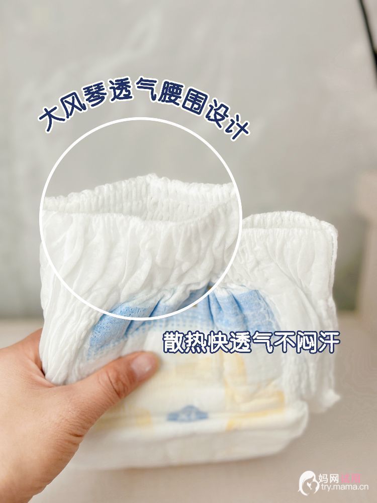 每次换一款新的纸尿裤,最怕宝宝红屁屁,这款的大风琴腰围真是神来之笔——像给纸尿裤开了无数个小窗户,湿热气很快就透出去了,不会闷汗,穿了一晚上也没出现红PP。而且弹力也很大,软乎乎的不勒肚子,乐芽穿着翻来翻去也没见有勒痕。