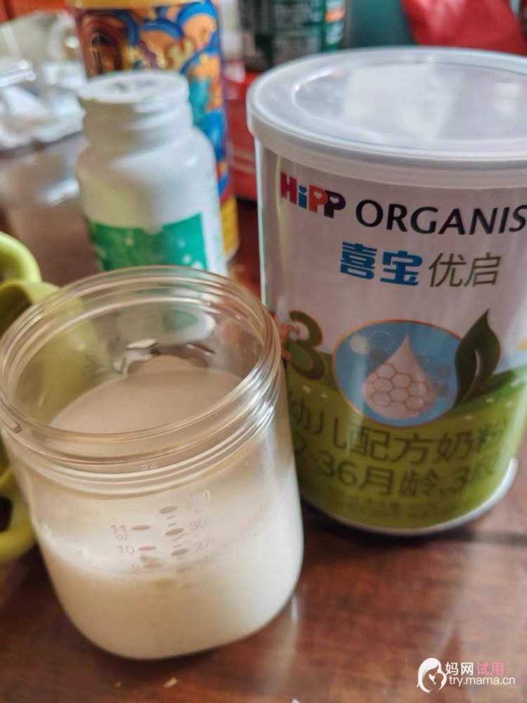 喜宝优启幼儿配方奶粉听朋友推荐过,测评博主也推荐过,正好给宝宝转奶阶段,考虑这款配方奶主要是99臻有机,安心好营养:>99%农业原料有机,比欧盟有机标准更严格的高端品质。而且100%有机乳源GOS,GOS有助呵护小肚肚,助力好吸收;100%有机乳糖配方:乳糖有助钙吸收,且口味清淡,不易上火。好吸收轻负担,妈妈安心之选。我自己先品尝一下,口感不错,打开之后粉质比较细腻,很容易冲开。给宝宝转奶阶段,没有不良反应,值得推荐