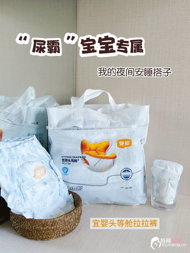 为了解决这个问题,试了好多款纸尿裤,要么吸量不够,要么容易返渗,要么材质不够柔软。试了好几款都不理想,不是半夜漏尿,就是把孩子闷出红屁屁。直到有一天,我在母婴群里看到有人推荐宜婴头等舱拉拉裤,说是“夜用神器”。我想着买一包试试。