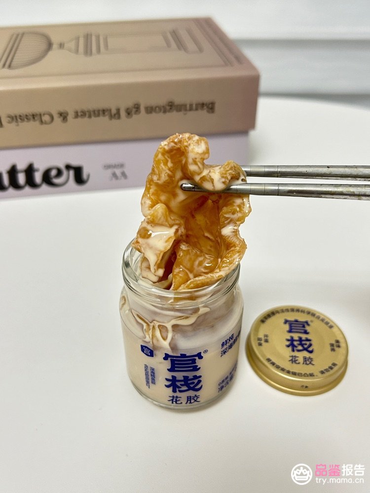 首先比较喜欢的是它的口感,真的一点腥味都没有,是茉莉花香的清甜,QQ弹弹的大块花胶,一口下去超满足,我这种怕腥星人也能直接炫完一瓶。而且它每瓶都有8500mg干鳕鱼胶皇,还含有6型胶原蛋白,不是那种水垮垮的边角料,实打实的料超足!